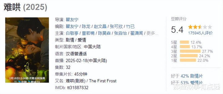但现在很多影视剧好像最不在乎就是故事,还是希望以后的国产剧能在编剧上多花点心思,别再让大家冲着热度追剧,最后却失望收场。