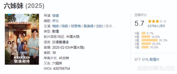 不过同样是被寄予厚望的年代剧《六姊妹》,播出以后却不是太让人满意。